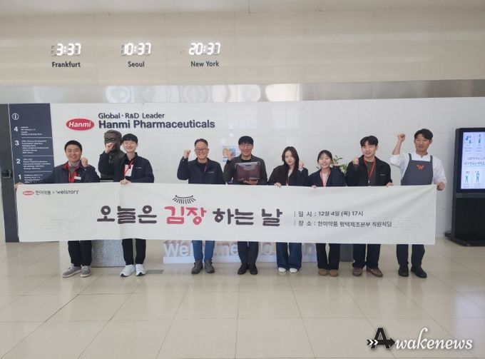 어웨이크뉴스 오경하 기자 | 평택시 팽성읍 추팔산업단지에 있는 ‘한미약품 평택제조본부’에서 올 겨울을 앞두고 지역사회 이웃들과 따뜻한 정을 함께 나누기 위하여, 직원들이 직접 담근 김장 김치 10㎏ 60통을 팽성읍에 기부했다.