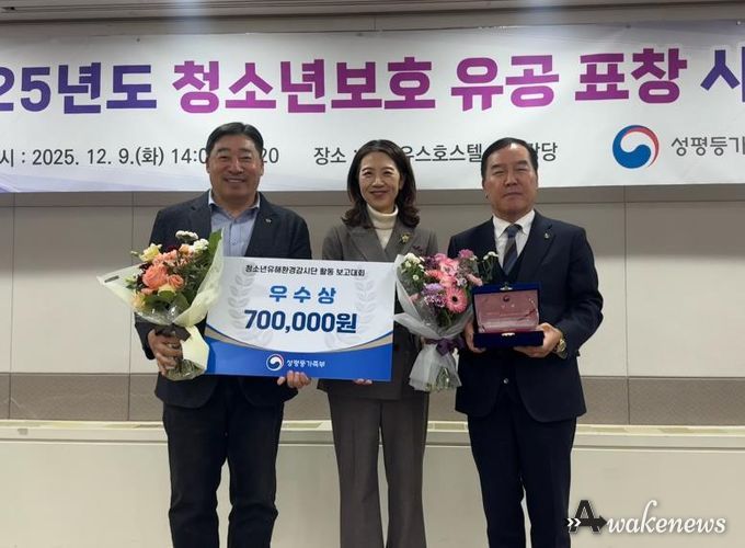 어웨이크뉴스 오경하 기자 | 오산시 청소년유해환경감시단인 법무부 청소년범죄예방위원 오산지구위원회가 지난 9일 서울유스호스텔에서 열린 성평등가족부 주관 '2025년 청소년유해환경감시단 활동 보고대회 및 청소년보호 유공 표창 시상식'에서 성평등가족부 장관 ‘우수상’을 수상했다.
