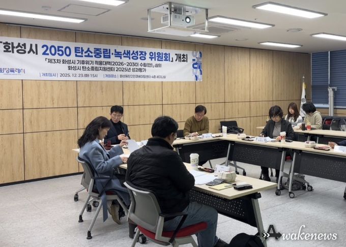 어웨이크뉴스 오경하 기자 | 화성특례시는 지난 23일 화성동탄2인큐베이팅센터에서 ‘2050 탄소중립·녹색성장위원회’ 회의를 열고 '제3차 기후위기 적응대책(2026~2030)' 최종(안)과 탄소중립지원센터 2025년 성과 평가를 심의했다.