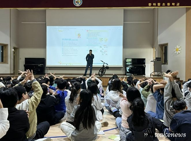 어웨이크뉴스 오경하 기자 | 광주 한아람초등학교는 4월 20일부터 21일까지 이틀간 광주시 자전거연맹과 협력해 4학년 학생 223명을 대상으로 ‘찾아가는 자전거 안전교육’을 실시했다.