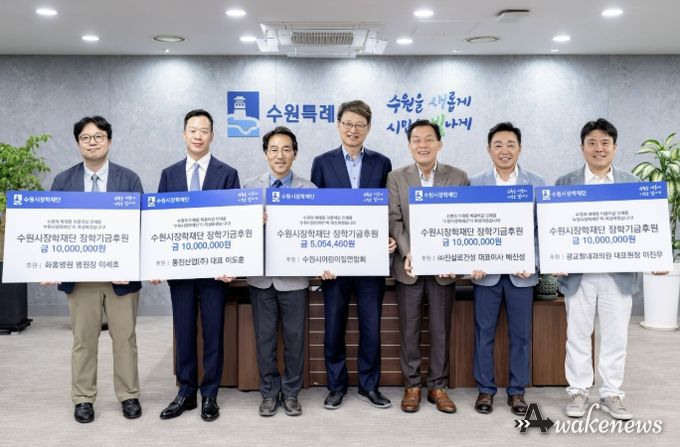 어웨이크뉴스 오경하 기자 | 수원시 5개 기업·단체가 “지역인재 양성에 사용해 달라”며 수원시장학재단에 장학기금 총 4500만 원을 기탁했다.