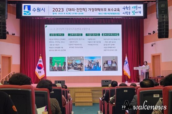 어웨이크뉴스 오경하 기자 | 수원시가 8일 시청 대강당에서 관내 대리·친인척 가정위탁 부모 100여 명을 대상으로 ‘2023년 일반가정위탁부모 보수교육’을 했다.