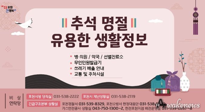 어웨이크뉴스 오경하 기자 | 포천시는 민족 최대 명절인 추석을 맞아 시민과 귀성객 모두가 안전하고 넉넉한 연휴를 보낼 수 있도록 ‘2023년 추석 연휴 종합대책’을 추진한다.