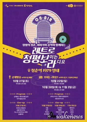 어웨이크뉴스 오경하 기자 | 경기도와 경기관광공사의 ‘2023년 역사·문화·생태 관광융합콘텐츠 개발’ 공모사업에 선정된 가평군의 ‘레트로 청평, 보라’가 오는 10월 21일, 22일, 28일, 11월 3일에 가평군 청평면에 위치한 청춘역 1979 일대에서 열린다.