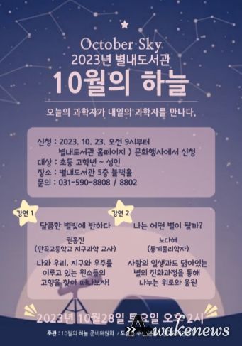 어웨이크뉴스 오경하 기자 | 남양주시 별내도서관은 한국도서관협회 및 10월의 하늘 준비위원회가 공동 주최하는‘10월의 하늘’진행 도서관으로 선정돼 오는 28일 과학자들의 재능기부 과학 강연을 개최한다고 밝혔다.