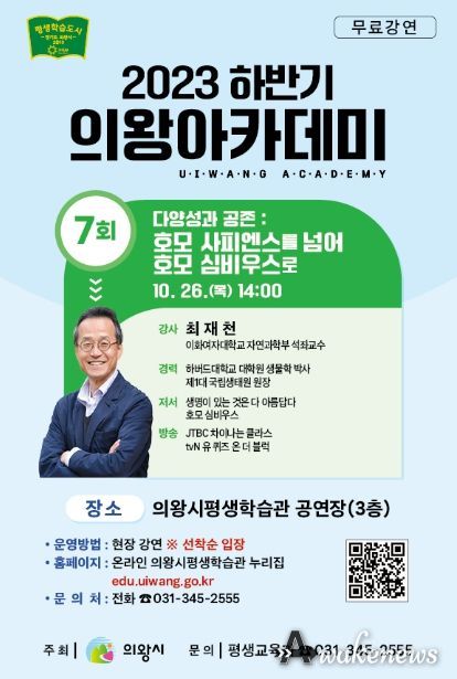 강연은 10월 26일 오후 2시 의왕시평생학습관에서 개최되며, 관심 있는 의왕시민이라면 누구나 선착순 무료입장으로 참여할 수 있다.
