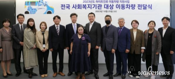 어웨이크뉴스 오경하 기자 | 신중동종합사회복지관은 하이트 진로가 진행한 어르신과 장애인 등 취약계층의 이동성 보장을 위한 공모사업에 선정되어 차량을 전달받았다. 차량 전달식은 10월 25일 하이트진로 서초사옥에서 김인규 대표이사 및 사회복지기관 관계자들이 참석한 가운데 진행됐다.