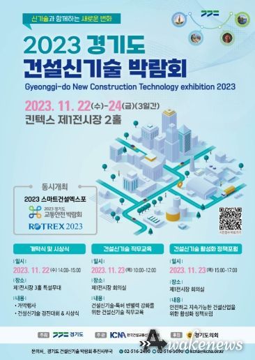 어웨이크뉴스 오경하 기자 | 경기도가 11월 22일부터 24일까지 킨텍스에서 ‘2023 경기도 건설신기술 박람회’를 개최한다.