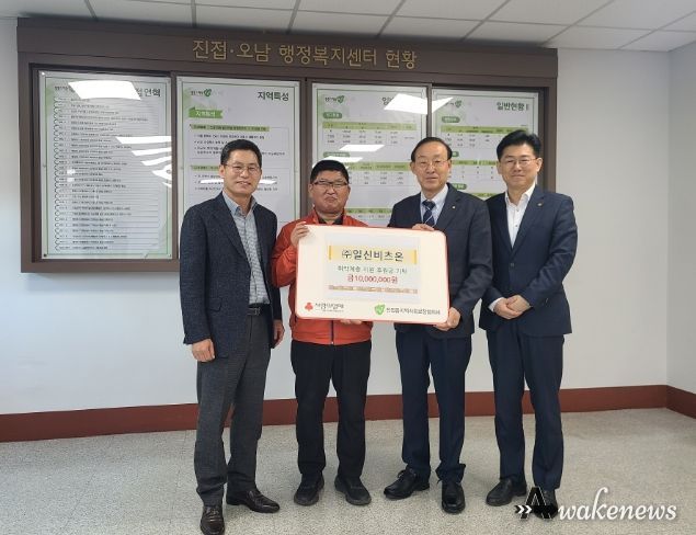 어웨이크뉴스 오경하 기자 | 남양주시 전접오남행정복지센터는 지난 10일 ㈜일신 비츠온에서 관내 취약계층 지원을 위한 후원금 1,000만 원을 진접읍 지역사회보장협의체에 기탁했다.