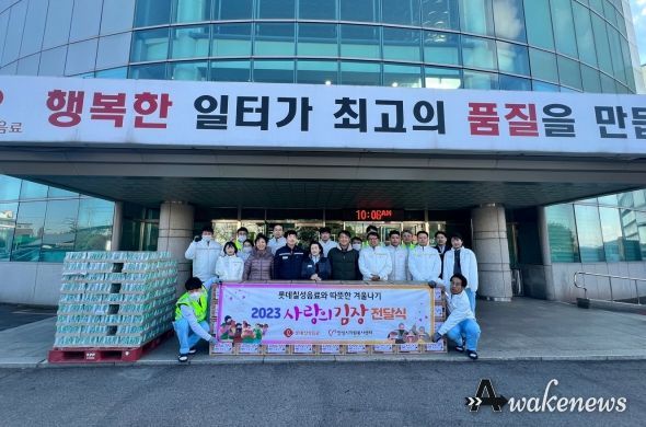 어웨이크뉴스 오경하 기자 | 안성시기업사회공헌단인 롯데칠성음료(주) 안성공장이 김장철을 맞아 11월 24일, 안성 지역 소외계층을 돕기 위해 안성시자원봉사센터에 김장 김치 10kg 72상자와 자사 음료를 기탁했다.