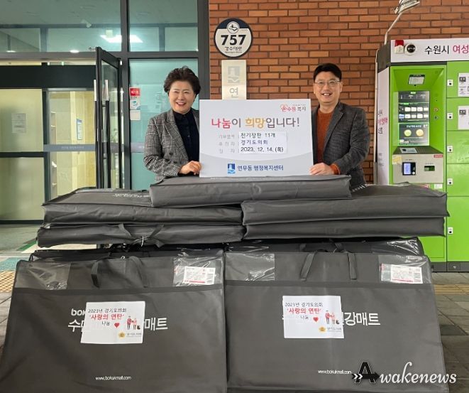 어웨이크뉴스 오경하 기자 | 지난 14일, 경기도의회에서 저소득계층 홀몸어르신, 사례관리대상자 등 어려운 이웃 11가구를 위한 전기장판을 연무동 행정복지센터에 후원했다.