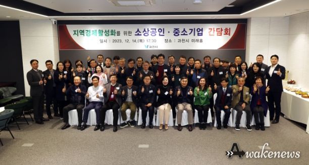 어웨이크뉴스 오경하 기자 | 과천시는 지난 14일 디테크타워 미래홀에서 관내 소상공인·중소기업 대표 60여 명이 참석한 가운데 간담회를 열고, 2024년 소상공인·중소기업 지원정책에 대한 홍보와 지역경제 활성화 방안 등에 대해 의견을 나누는 시간을 가졌다.