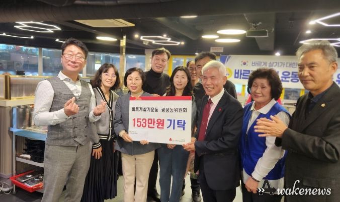 어웨이크뉴스 오경하 기자 | 바르게살기운동 광정동위원회에서는 15일 지역의 수급자, 차상위계층, 그리고 저소득자들을 위해 153만원을 기탁했다.