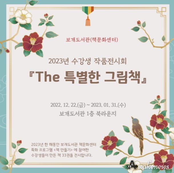 어웨이크뉴스 오경하 기자 | 보개도서관 책문화센터에서는 2023년 12월 22일부터 2024년 1월 31일까지 2023년 수강생 작품 전시회『The 특별한 그림책』을 진행한다.