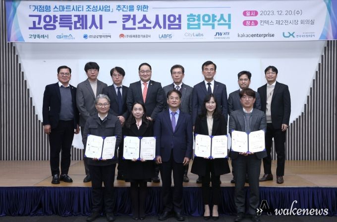 어웨이크뉴스 오경하 기자 | 고양특례시가 12월 20일 킨텍스 제2전시장에서 ‘거점형 스마트시티 조성사업 협약식’을 개최했다. 협약식에는 이동환 고양특례시장을 비롯하여 고양산업진흥원, 진우에이티에스(주)를 비롯해 8개 협력체(컴소시엄) 대표, 분야별 자문위원과 산하기관장이 참석했다.