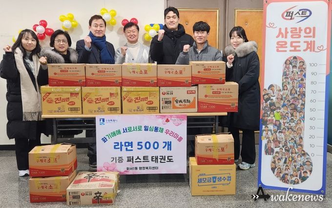 어웨이크뉴스 오경하 기자 | 지난 22일 오전, 수원시 팔달구 소재 퍼스트 태권도에서 관내 어려운 이웃과 함께 나누고 싶다며 사랑의 라면 500여개를 화서1동 행정복지센터에 전달했다.