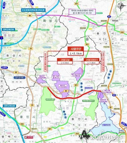 경기도가 만성정체를 빚는 ‘국지도 82호선 용인 장지-남사’ 구간 도로건설공사를 추진한다.