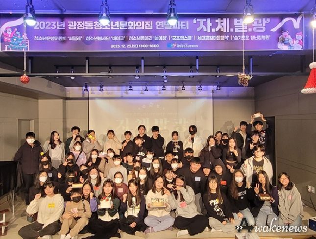 어웨이크뉴스 오경하 기자 | (재)군포시청소년재단 광정동청소년문화의집은 12월 23일 자치조직 청소년(청소년운영위원회, 청소년동아리, 청소년봉사단, 세대공감마을행복, 슬기로운장난감병원, 군포랩스쿨)들이 ▲2023년 활동 성과 공유 ▲레크레이션 ▲위원별 활동 소감 및 운영평가 시간을 갖는 연말파티 ‘자체발광’을 성황리에 마쳤다.