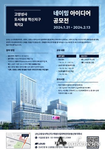 어웨이크뉴스 오경하 기자 | 고양특례시는 2월 13일까지 고양성사 도시재생 혁신지구 사업 획지2 시설의 네이밍 아이디어 공모전을 실시한다고 밝혔다.