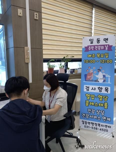 어웨이크뉴스 오경하 기자 | 포천시 일동면 행정복지센터는 매주 목요일 오전 10시부터 12시까지 일동면 행정복지센터 1층에서 '건강체크데이'를 운영한다.