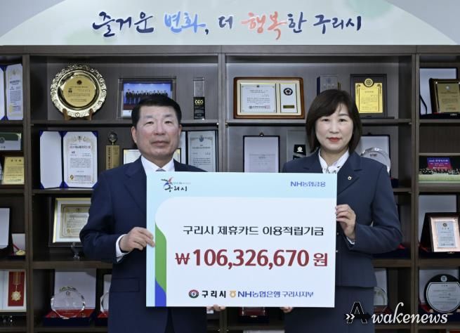어웨이크뉴스 오경하 기자 | 구리시는 지난 1일 NH농협은행 구리시지부와 2024년도 NH농협카드 이용에 따른 카드포인트 적립금 전달식을 가졌다.