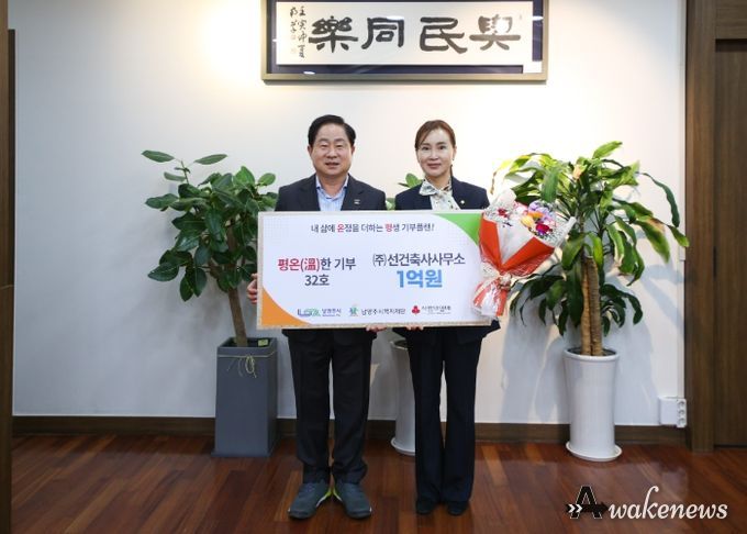 어웨이크뉴스 오경하 기자 | 남양주시는 10일, 시장 집무실에서 ㈜선건축사사무소의 ‘평온한 기부’ 32호 가입을 기념하는 가입식을 개최했다.