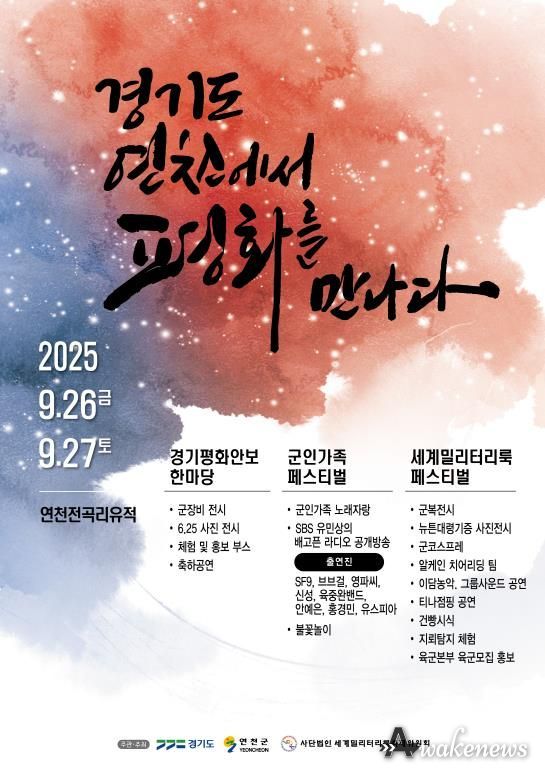 어웨이크뉴스 오경하 기자 | 경기도는 9월 26일과 27일 이틀간 연천군 전곡리유적에서 ‘2025년 경기 평화안보 한마당’을 개최한다. ‘연천 군인가족 페스티벌’과 함께 진행될 예정인 이날 행사는 도민과 군인가족이 함께 평화와 안보의 가치를 공유하는 소통과 화합의 장으로 마련했다.