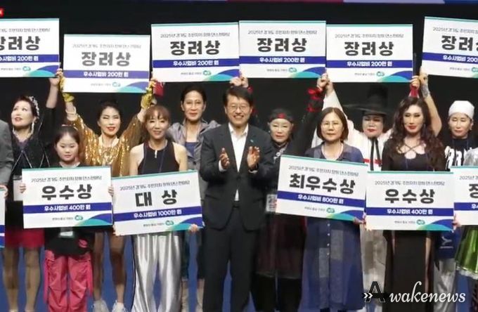 어웨이크뉴스 오경하 기자 | 경기도는 24일 의정부문화재단 대극장에서 ‘2025년 경기도 주민자치 장끼 댄스 한마당’을 열고, 성남시 ‘댄싱덕(춤추는 오리)’ 팀에 대상을 수여했다.