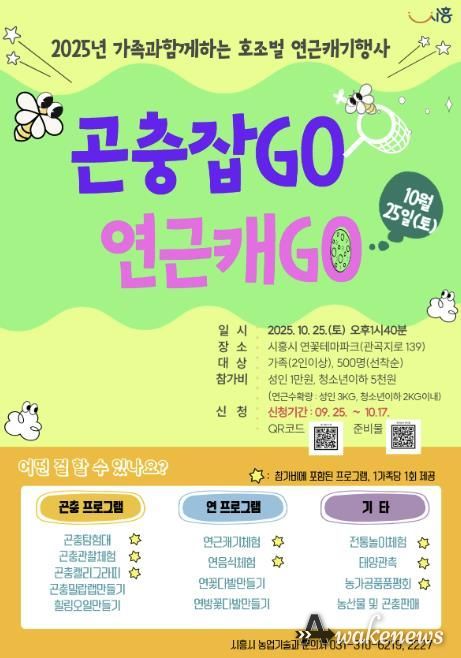 어웨이크뉴스 오경하 기자 | 시흥시는 오는 10월 25일 오후 1시 40분부터 5시까지 연꽃테마파크에서 가족 단위 참여자를 위한 특별 체험행사 ‘곤충 잡고(GO), 연근 캐고(GO)’를 진행한다. 이번 행사는 지역 농가와 협력해 다양한 체험 프로그램을 동시에 제공한다.