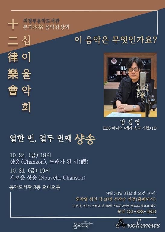 어웨이크뉴스 오경하 기자 | 의정부음악도서관은 음악 전문가의 해설과 함께하는 음악감상회 ‘십이율악회(十二律樂會)’를 10월에도 운영한다.