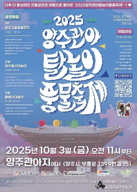 어웨이크뉴스 오경하 기자 | 양주살판이 오는 10월 3일 양주관아지 일대에서 ‘양주관아 탈놀이 풍물축제’를 연다.