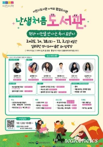 어웨이크뉴스 오경하 기자 | 이천시 도서관은 오는 10월 18일부터 경기도자미술관에서 열리는 ‘난생처음 도서관’의 사전 신청 접수를 10월 1일 10시부터 시작한다고 밝혔다. ‘난생처음 도서관’은 시민 누구나 야외에서 책과 함께 다양한 체험을 즐길 수 있도록 마련된 특별한 야외 팝업도서관이다.