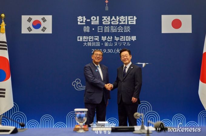 어웨이크뉴스 오경하 기자 | 이재명 대통령은 9월 30일 '이시바 시게루(石破 茂)' 일본 총리와 부산에서 한일 정상회담을 가졌다. 양 정상은 한일 간 실질 협력 강화 방안과 지역 및 글로벌 차원에서의 협력 필요성에 대해 폭넓고 심도 깊은 의견을 교환했다.