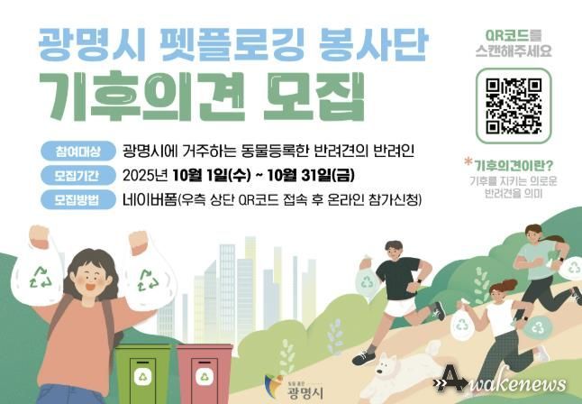 한편, 광명시는 올해 1기를 시작으로 봉사단 규모를 매년 확대해 생활 속 기후실천 문화를 확산하고, 환경정화와 반려문화가 결합된 시민 참여형 모델을 정착시킬 계획이다.