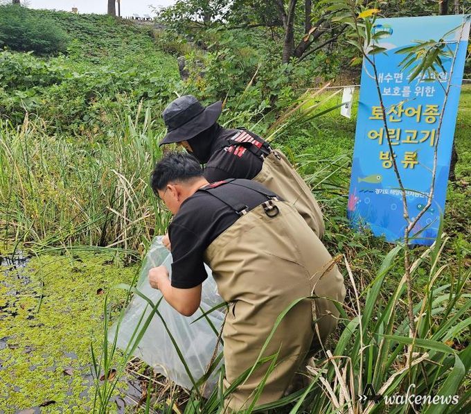 어웨이크뉴스 오경하 기자 | 경기도해양수산자원연구소가 토종 민물고기 종 보존과 하천 생태계 복원을 위해 경기도 보호 어종인 버들붕어 치어 1천 마리를 9월 30일 광주시 경안천습지생태공원에 방류했다.