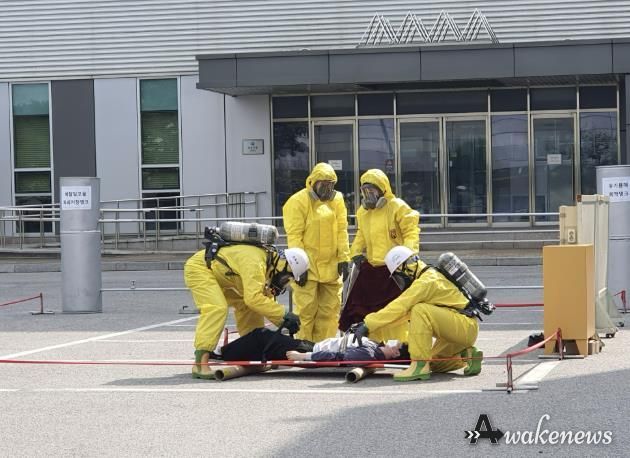 어웨이크뉴스 오경하 기자 | 용인특례시는 30일 처인구 백암면에 있는 제일약품㈜ 에서 유해화학물질 누출사고 대응 합동훈련을 진행했다.