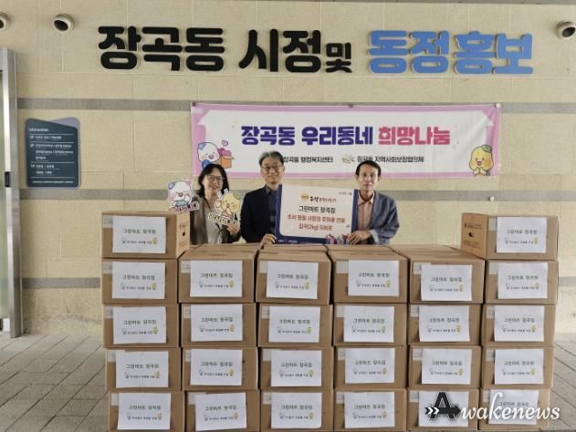 어웨이크뉴스 오경하 기자 | 그린마트 장곡점은 다가오는 추석을 맞아 지난 9월 30일 장곡동 행정복지센터(동장 도영찬)에 잡곡(2kg) 500포를 후원했다.