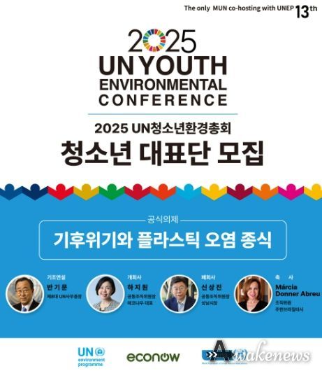 어웨이크뉴스 오경하 기자 | 성남시청소년청년재단 판교유스센터와 환경단체 에코나우는 오는 11월 15일부터 16일까지 이틀간 성남 국립국제교육원에서 열리는 ‘2025 UN청소년환경총회’에 참가할 국내외 청소년 대표단 300명을 10월 13일까지 모집한다. 이번 총회는 성남시청소년청년재단 판교유스센터와 환경단체 에코나우가 공동 주관하며, 반기문 전 UN사무총장과 브라질 대사 등 주요 인사가 참석한다.