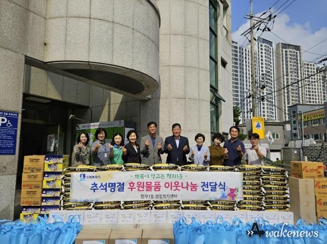 어웨이크뉴스 오경하 기자 | 수원시 장안구 정자1동은 지난 1일, 추석 명절을 앞두고 관내 단체, 기업, 개인 등에서 기탁한 성금과 물품을 어려운 이웃들에게 전달하는 ‘추석 이웃사랑 나눔 전달식’을 개최했다.