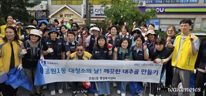 어웨이크뉴스 오경하 기자 | 수원시 장안구 조원1동은 추석과 APEC을 맞아 추진 중인 국민 참여 운동인 「대한민국 새단장」 캠페인의 일환으로 추석맞이 대청소를 실시했다.