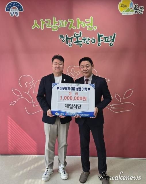 어웨이크뉴스 오경하 기자 | 양평군 용문면은 10월 1일, 관내 음식점인 제일식당이 지역 내 취약계층을 돕기 위해 용문면사무소를 방문해 기부금 100만 원을 전달했다고 밝혔다.