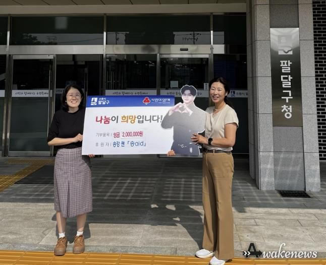 이상균 팔달구청장은 “따뜻한 나눔을 실천해주신 송강 팬모임 ‘송aid’에 깊이 감사드린다”며, “전달해주신 성금은 어려운 아동·청소년들에게 소중히 쓰일 수 있도록 최선을 다하겠다”고 말했다.