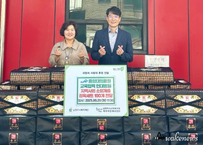 어웨이크뉴스 오경하 기자 | 남양주시는 지난달 29일 진접읍에 위치한 중앙대의료원 교육협력 현대병원이 추석을 앞두고 1,000만 원 상당의 정육세트 100개를 북부희망케어센터에 전달했다고 2일 밝혔다.