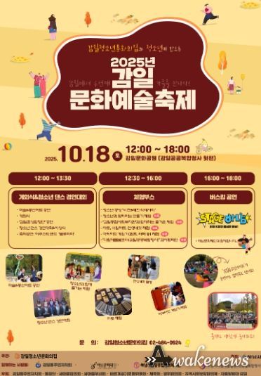 어웨이크뉴스 오경하 기자 | 하남시 감일청소년문화의집은 오는 10월 18일 오후 12시부터 18시까지 감일문화공원(감일공공복합청사 뒷편)에서 '제2회 감일문화예술축제'를 개최한다.