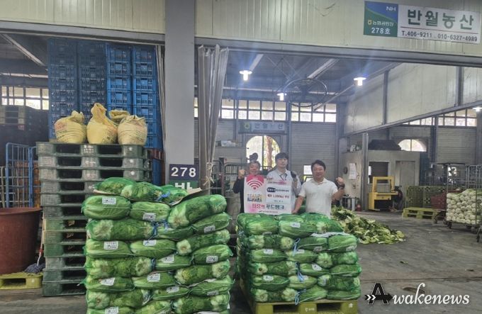 어웨이크뉴스 오경하 기자 | 안산시 농수산물도매시장은 지난 2일 도매시장 내 중도매인인 반월농산(대표 노영현)으로부터 추석 명절을 맞이해 배추 1,800kg을 기탁받았다고 3일 밝혔다.