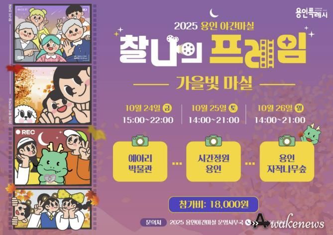 어웨이크뉴스 오경하 기자 | 용인특례시는 13일부터 15일까지 지역의 가을 야경을 만끽할 수 있는 ‘2025 용인 가을빛마실’ 참가자 315명을 모집한다고 10일 밝혔다.