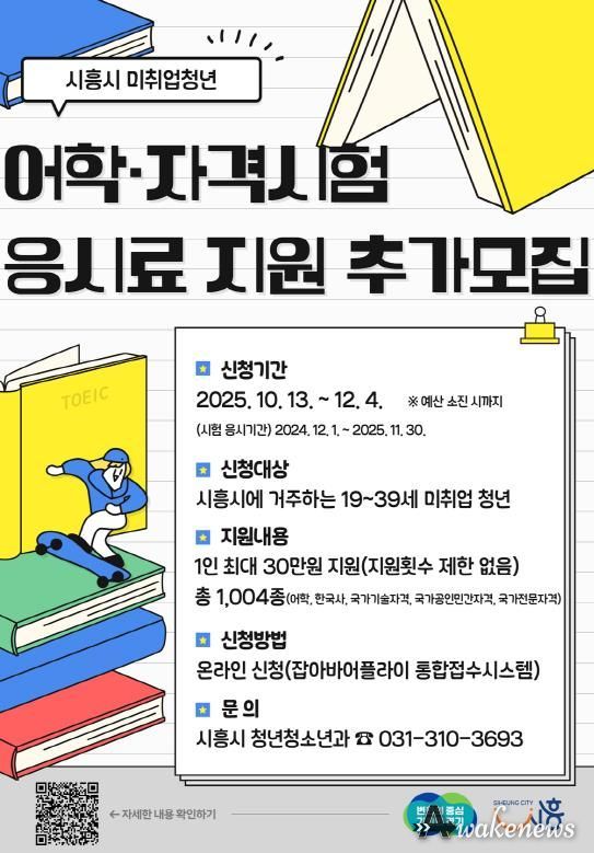 어웨이크뉴스 오경하 기자 | 시흥시는 10월 13일부터 관내 취업 준비 청년들의 능력개발을 돕기 위한 어학ㆍ자격시험 응시료 지원 3차 모집을 실시한다.