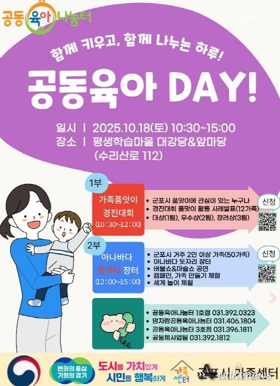 어웨이크뉴스 오경하 기자 | 군포시가족센터는 오는 10월 18일 평생학습마을에서 시민들이 함께 어우러지는 ‘공동육아DAY’를 개최한다.