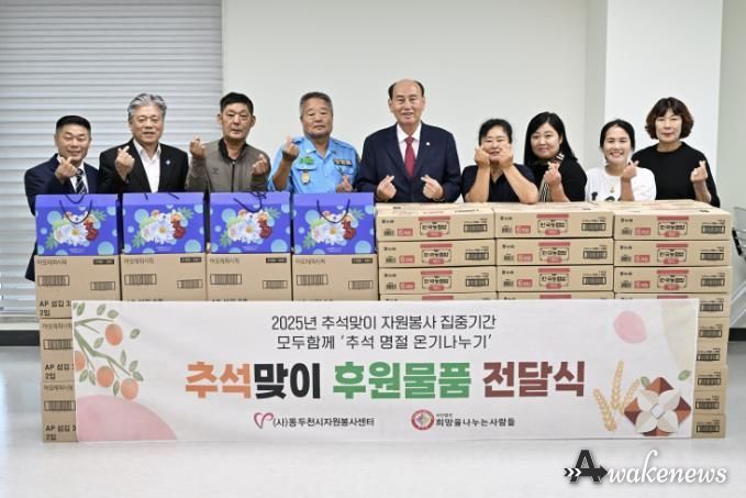 어웨이크뉴스 오경하 기자 | 사단법인 동두천시 자원봉사센터는 10월 1일 자원봉사센터에서 시장과 자원봉사단체 5곳이 함께한 가운데 ‘2025 추석 맞이 자원봉사 집중기간–모두 함께 추석 명절 온기 나누기’ 행사의 일환으로 취약계층 후원 물품 전달식을 가졌다.