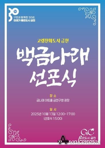어웨이크뉴스 오경하 기자 | 금천구는 13일 오후 3시 금나래아트홀 공연장에서 ‘백금나래 선포식’을 연다고 밝혔다.